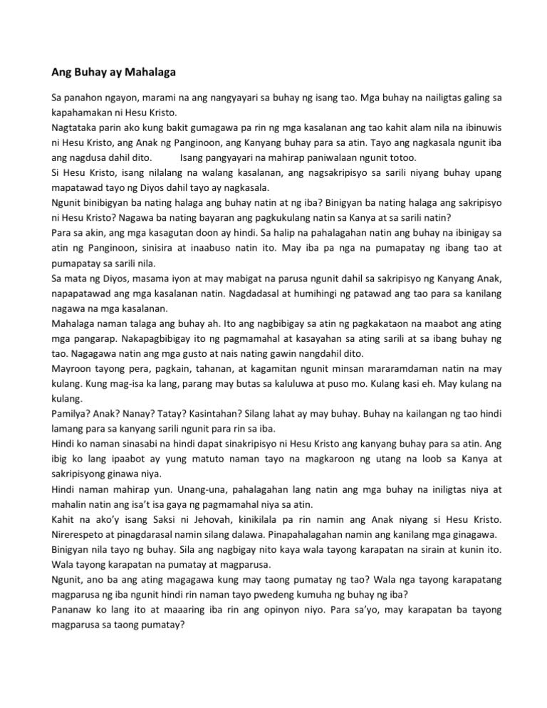 Noon ang apoy ay ginagamit ng mga sinaunang panahon para gamitin panakot sa mga halimaw. Mahalaga rin na isulong at paunlarin ang wikang Filipino sapagkat nagiging daan rin ito upang makamit ang inaasam na pagsulong ng bayan. Noong 1987 ipinadala ako ng Russian Ministry of Health sa Uganda Aprika.