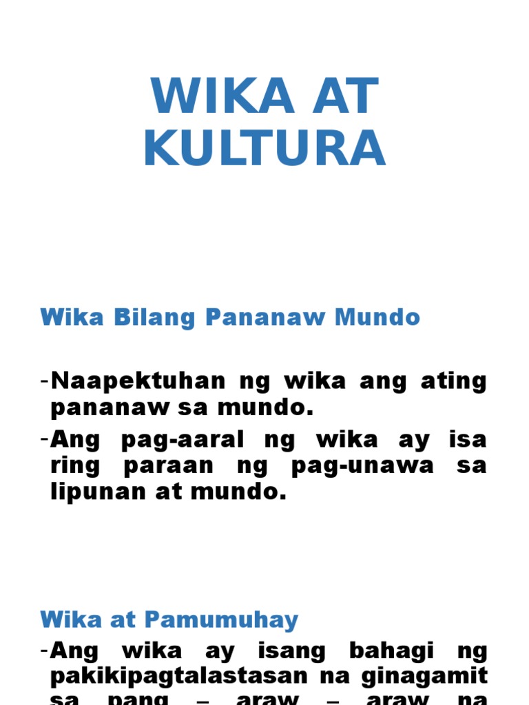 Ginagamit dito ang wika. Bahagi ng paghubog at paglinang ng ating pagkatao ang wika. Ang kultura ay.