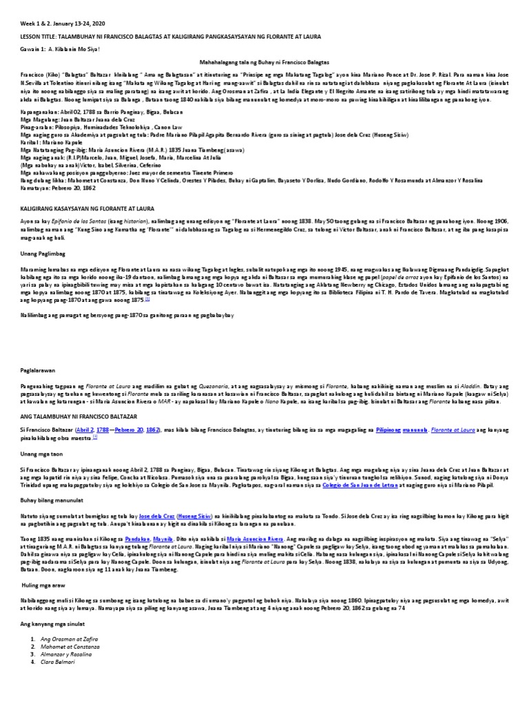 Si Francisco Balagtas Baltazar ay ipinanganak noong 2 Abril 1788 sa Panginay Biguaa ngayon ay Balagtas Bulacan. Ang Talambuhay ni Francisco Balagtas Baltazar. Sino kaya ang ina ni Folrante.